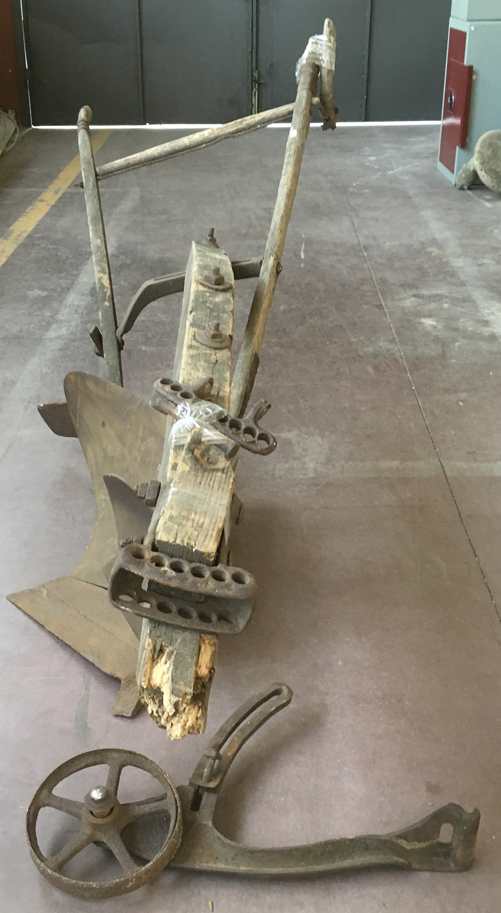 Aratro a trazione animale in legno con vomere in ferro, inizio secolo XX (difetti e mancanze)