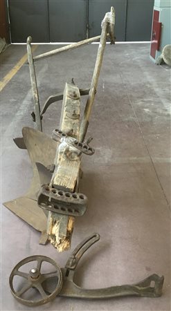 Aratro a trazione animale in legno con vomere in ferro, inizio secolo XX...