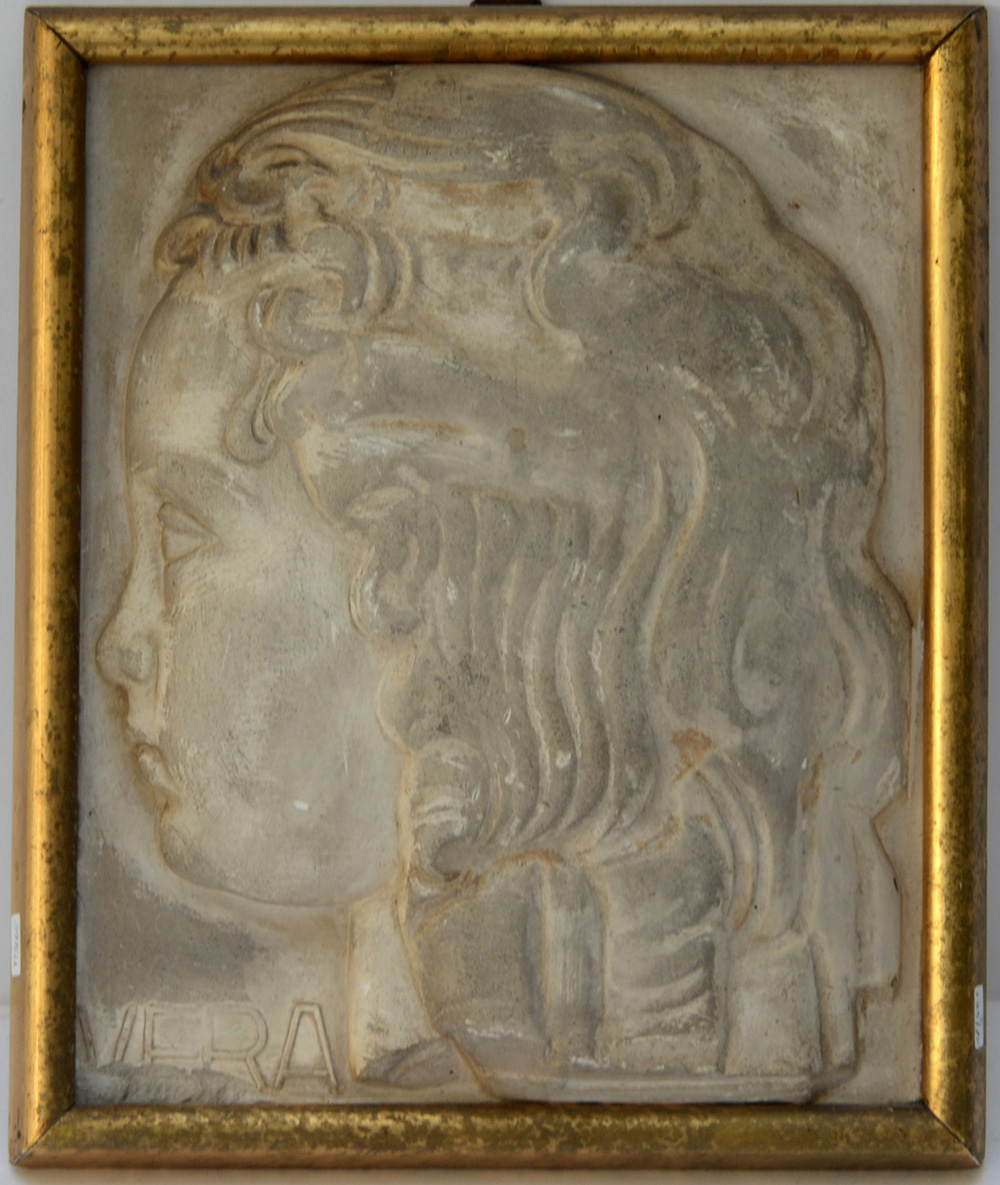Scuola dell'inizio del secolo XX, calco in gesso raffigurante profilo di ragazzo, in cornice (difetti)