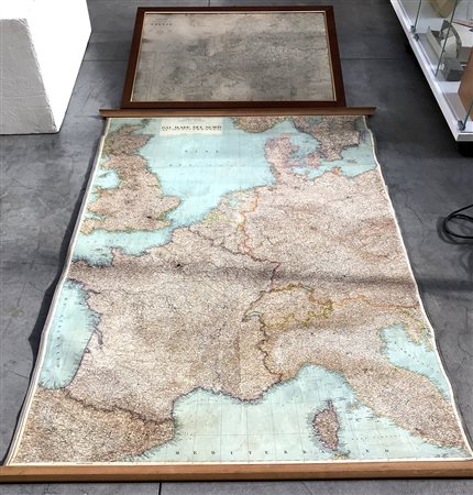 Lotto composto da una mappa dell’Europa del 1880 e una mappa arrotolata dei...