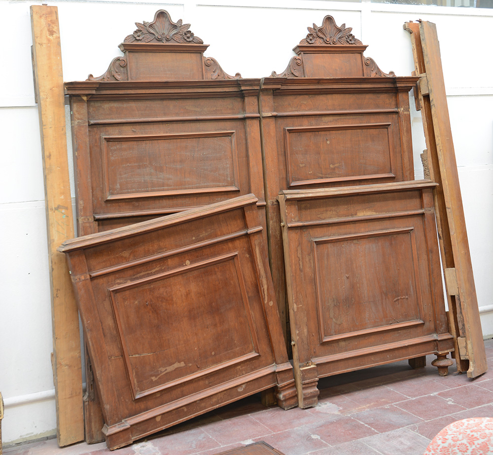 Letto matrimoniale di struttura architettonica composto da due letti uniti, inizio secolo XX (difetti e mancanti delle traverse)