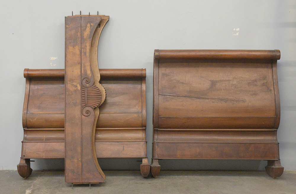 Letto singolo a barca completo di sponde, secolo XIX (difetti)