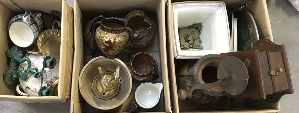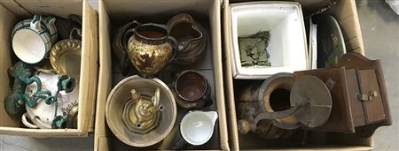 Lotto composto da tre scatole contenenti oggetti vari (difetti)