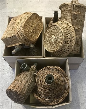 Lotto di tre cartoni contenenti fiaschette e ceste di capienze dimensioni differenti (difetti)