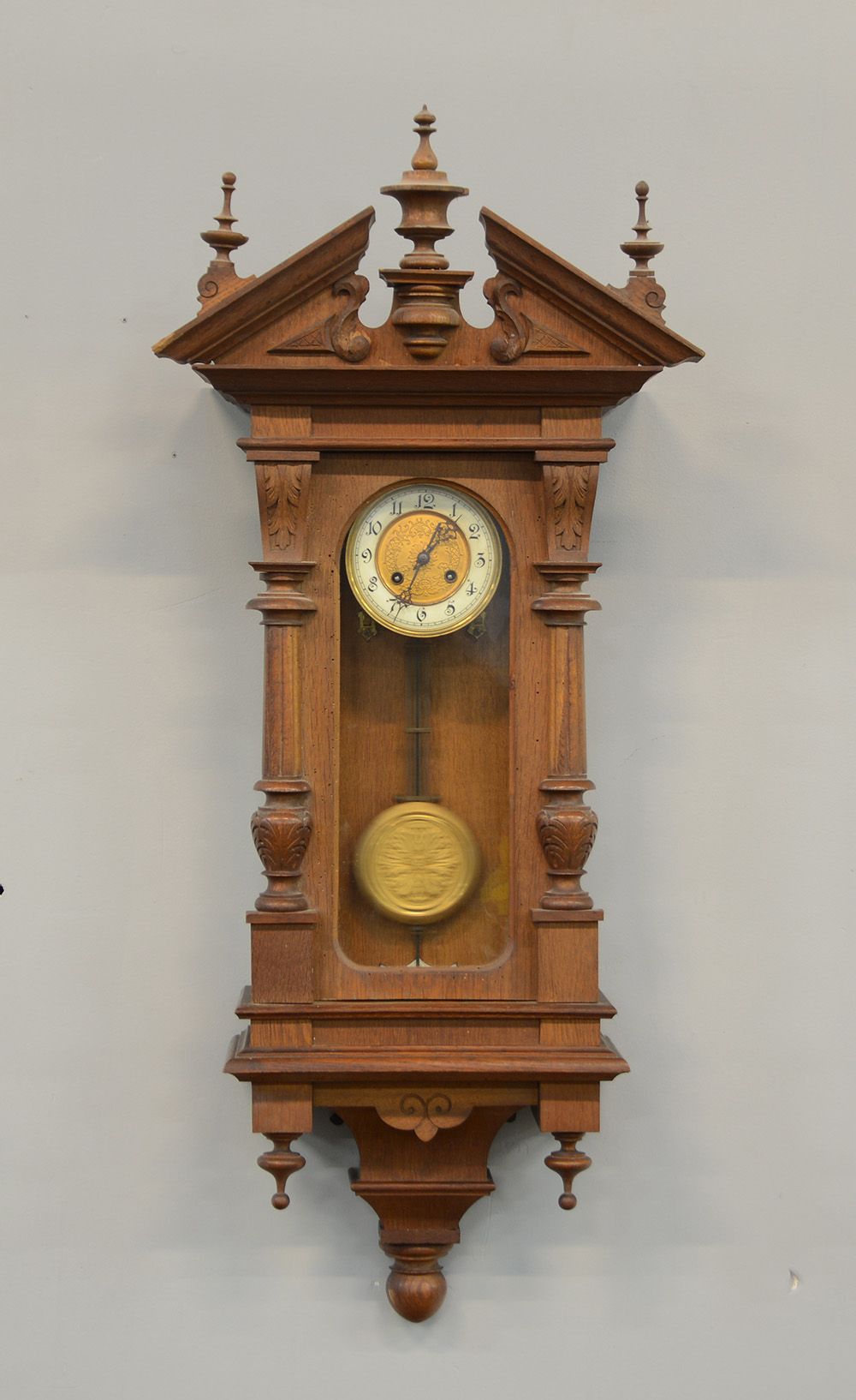 Orologio a muro con cassa e montanti architettonici e scanalati (h. cm 110)