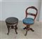 Lotto composto da due sgabelli da pianoforte con seduta regolabile in altezza. Secolo XIX (difetti)