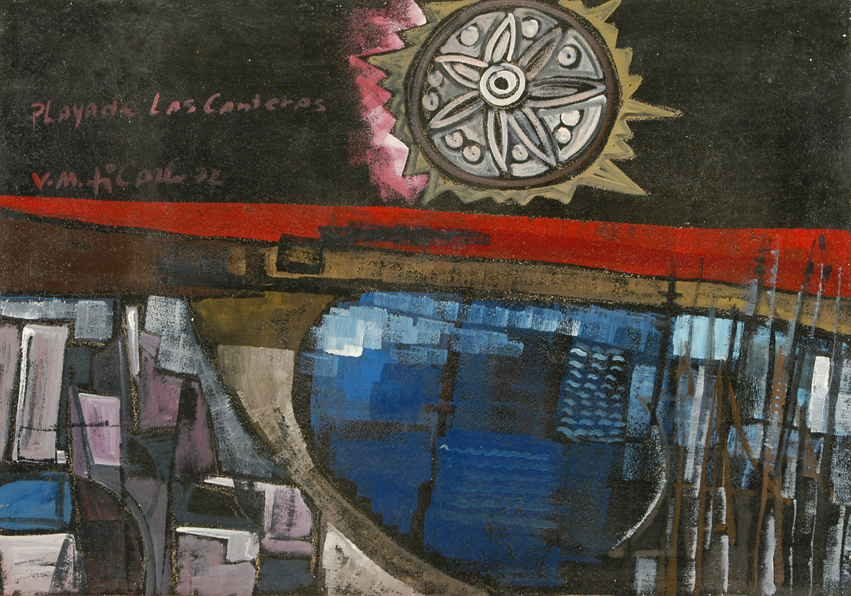 Vittorio Maria Di Carlo Playa de las Canteras, 1972 Olio su tela, cm. 70x100 Firma, data e titolo in alto a sinistra. Sul verso: firma; Cartiglio con descrizione; Etichetta di Autenticità "Galleria Rosemberg", Milano. Autentica dell'Artista su foto.