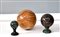Lotto di tre sfere decorative di marmi differenti delle quali due con...