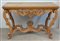 Consolle in legno intagliato e laccato con grembiale traforato, gambe mosse...