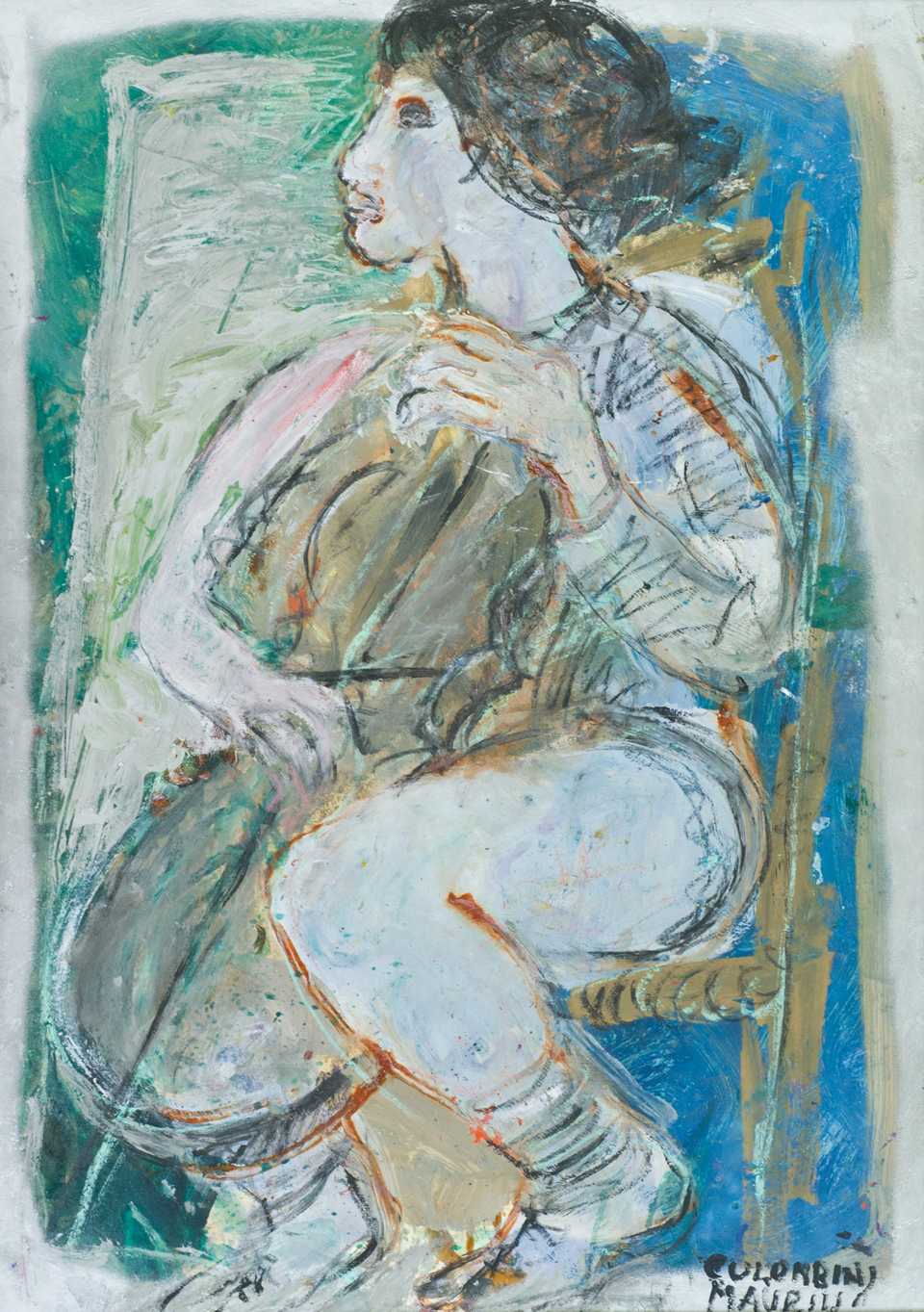 Maurilio Colombini Violoncellista Tecnica mista su cartone, cm. 100x71 Firmato in basso a destra.