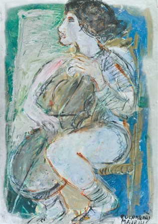 Maurilio Colombini Violoncellista Tecnica mista su cartone, cm. 100x71...