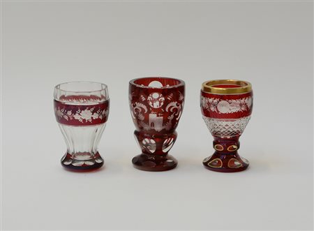 Manifattura di Boemia. Lotto composto da tre bicchieri in cristallo molato...