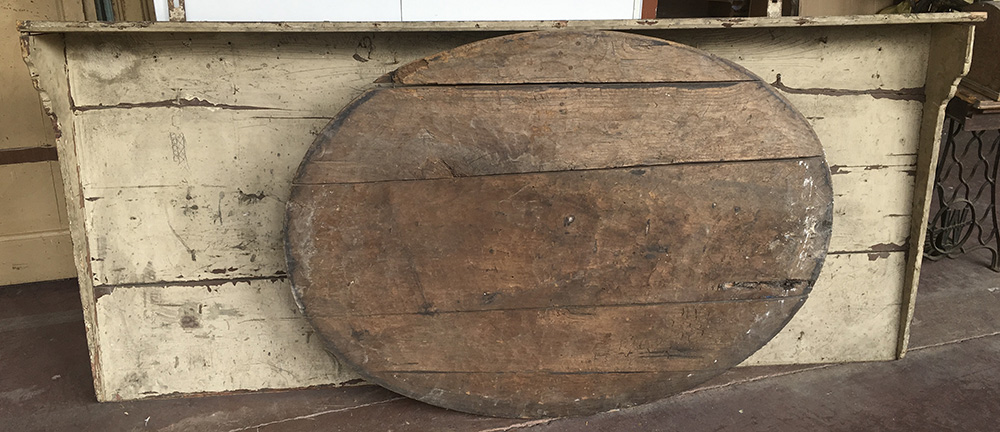 Lotto composto da un attaccapanni rustico in legno verniciato e un piano ovale (difetti)