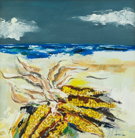 Mauro Capitani La spiaggia della fortuna, 2009 Olio su tela, cm. 50x50 Firmato in basso a destra. Sul verso: firma e titolo. Autentica dell'Artista con foto.