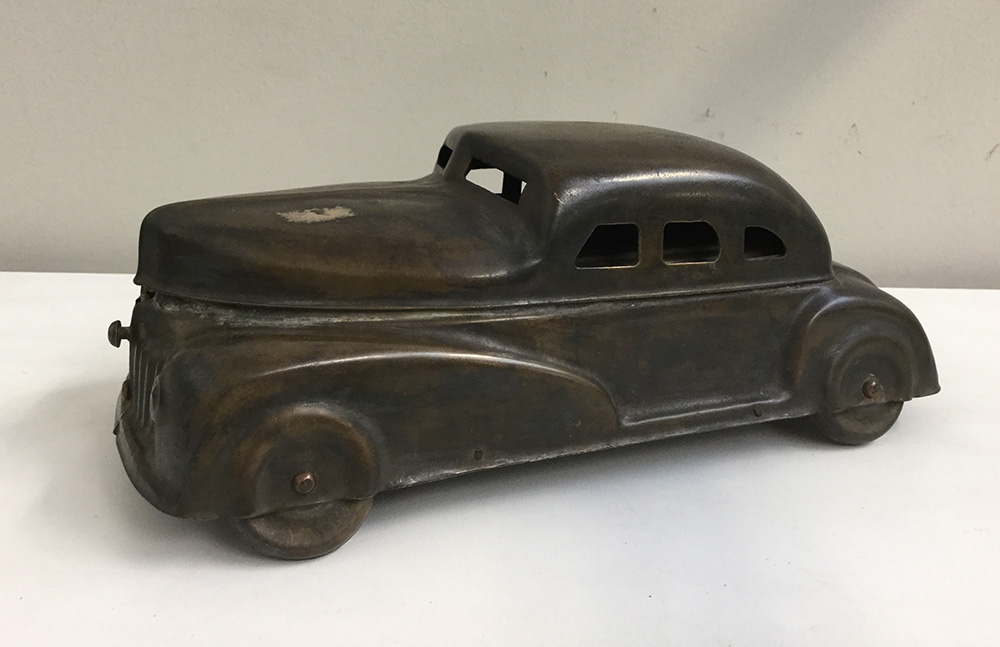 Calamaio in metallo a forma di automobile con parte superiore apribile, marcato Betel Motor Car, anni ‘30 del sec. XX (difetti)