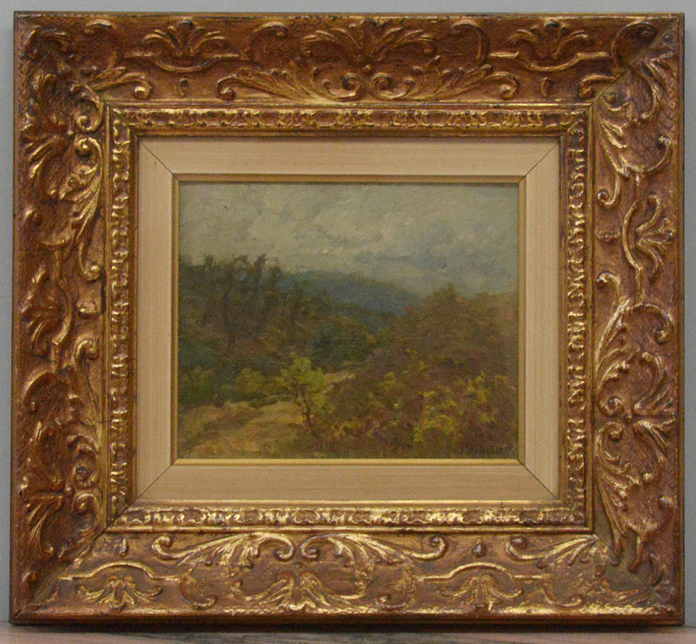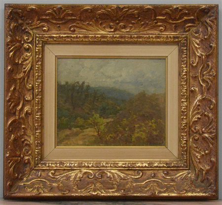 (ATTR) "Paesaggio", olio su cartone (cm 18x21), reca firma apocrifa in basso a destra, in cornice. (Difetti)