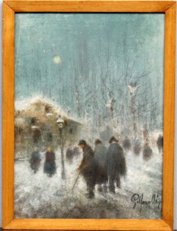 Galbarelli "Paesaggio invernale con figure" tecnica mista (cm 40x29) firmata...