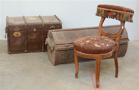 Lotto composto da una sedia del secolo XIX e due bauli di epoche diverse...