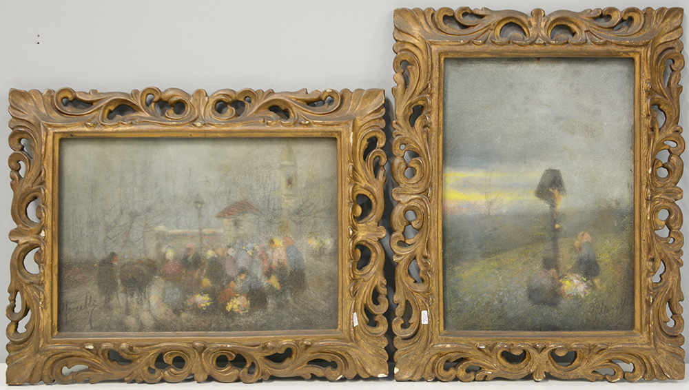 "La sosta" e "Processione" lotto di due tecniche miste di misure diverse, in cornici