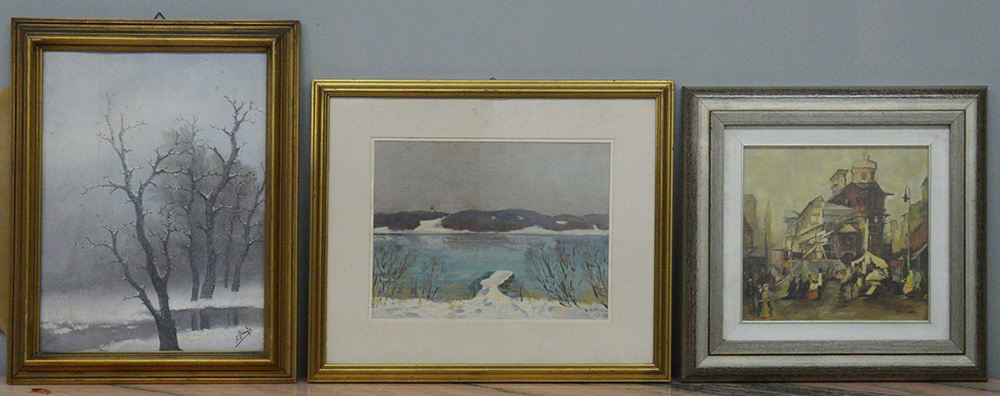 Lotto composto da tre dipinti ad olio di autori, soggetti e misure divese, in cornice. (Difetti e mancanze)