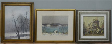 Lotto composto da tre dipinti ad olio di autori, soggetti e misure divese, in...