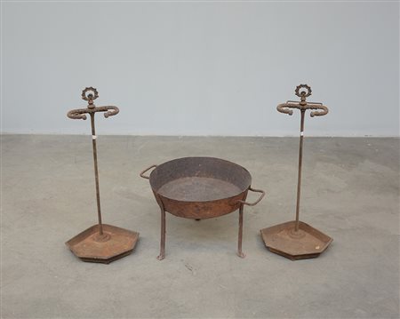 Lotto composto da due portaombrelli e un braciere in rame (difetti)