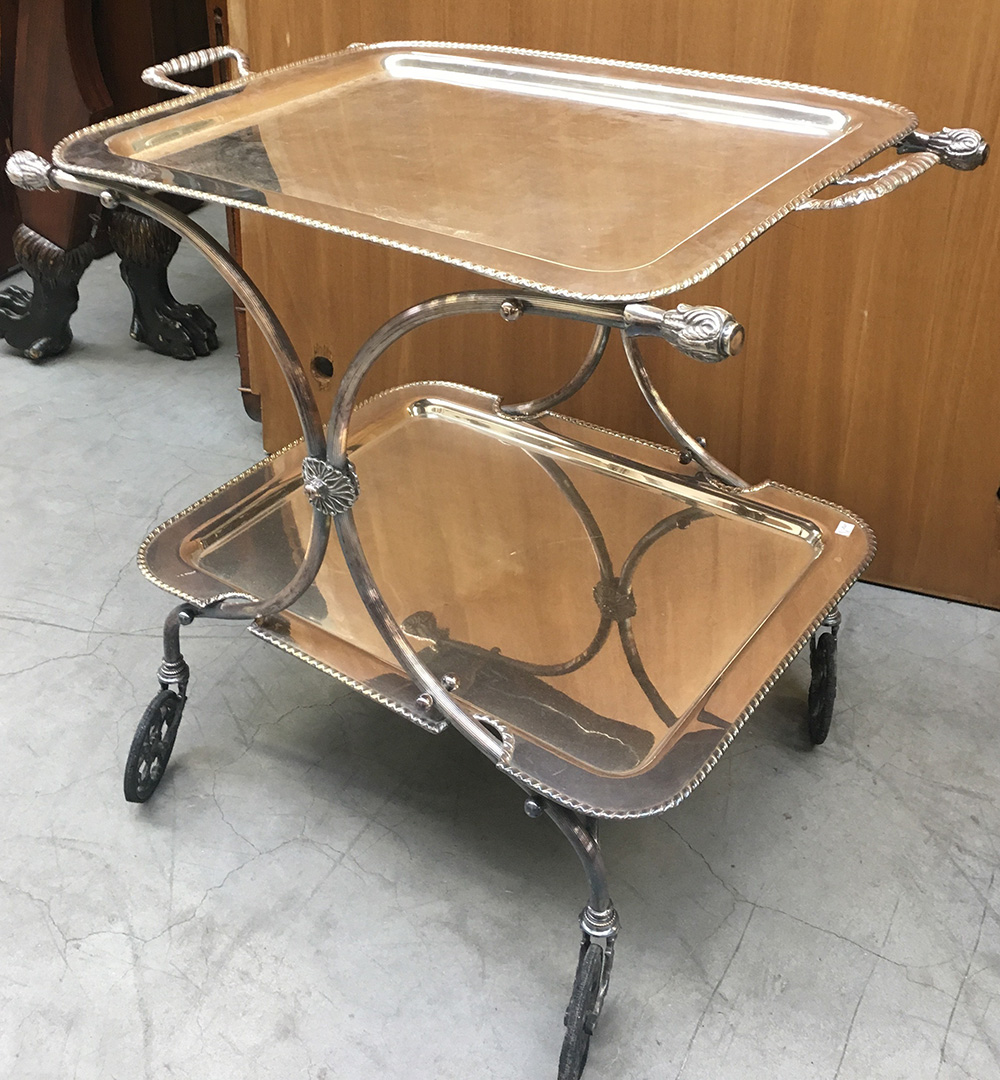 Carrello portavivande in metallo argentato con vassoio estraibile (cm 71x67x48)