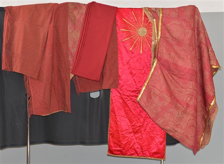 Lotto di diversi tessuti da arredamento jacquard color bordeaux (difetti)