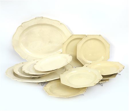 Lotto composto da dodici tra piatti e vassoi in terraglia. Manifatture...
