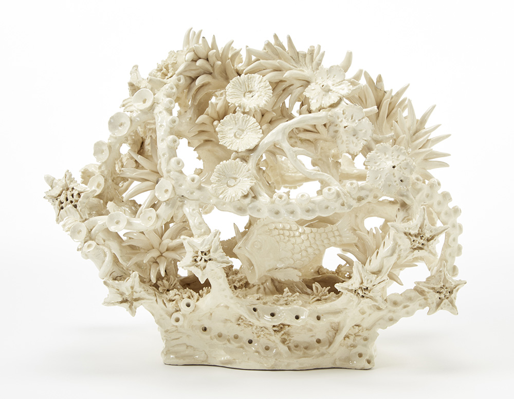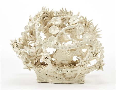 Cespo di coralli e pesci. Scultura in maiolica bianca invetriata. Bassano del Grappa, anni '50. (cm 33,5x27) (difetti e mancanze)