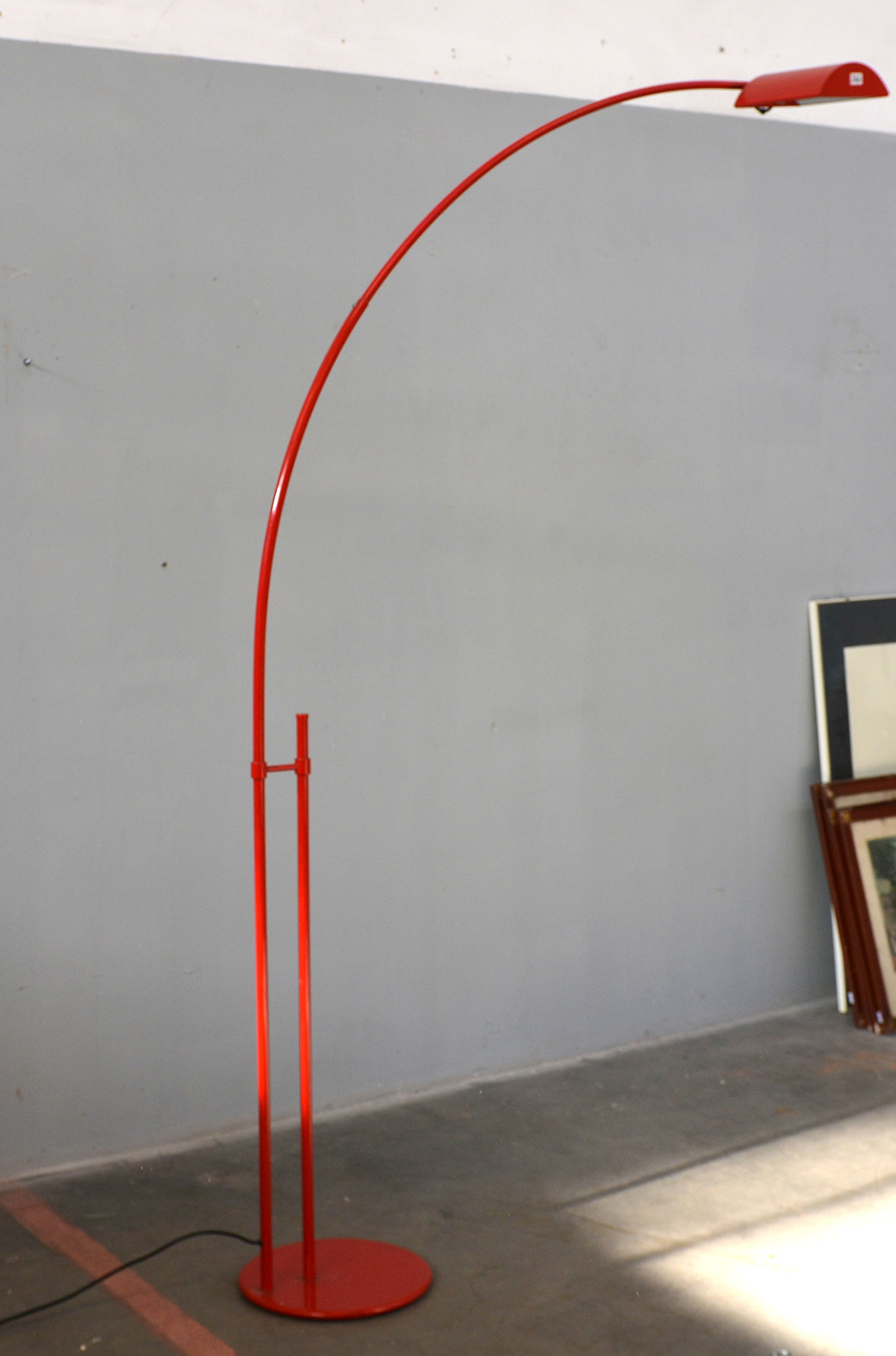 Lampada da terra ad arco in metallo laccato rosso. Italia, anni '90. (Misura variabile) (lievi difetti)