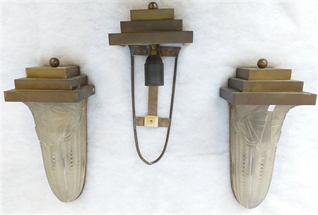 Manifattura franceseLotto di tre appliques déco con struttura in ottone e...