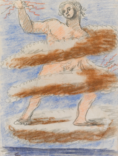 ALBERTO SAVINIO 1891 - 1952 GIOVE signed with monograms, pastels and pencil on paper. Executed in 1932 siglato pastelli e matita su carta cm 26,5x20,5 Eseguito nel 1932 PROVENANCE Galleria Spazio Immagine, Milano Ivi acquistato dall'attuale proprietario negli anni Novanta EXHIBITED Milano, Galleria Tega; Roma, Galleria Il Segno, Savinio, Disegni immaginati ,1984, n. 40, pagg. 126-127, illustrato (datato 1931-1932) Milano, Galleria d'Arte Moderna, Alberto Savinio. Opere su carta 1925-1952, 1986, n. 38, illustrato (datato 1931-1932) LITERATURE M. Fagiolo Dell'Arco, Savinio, Milano 1989, pag. 16, illustrato P. Vivarelli, Alberto Savinio. Catalogo generale, Milano 1996, pag. 264, n. 1932 10, illustrato