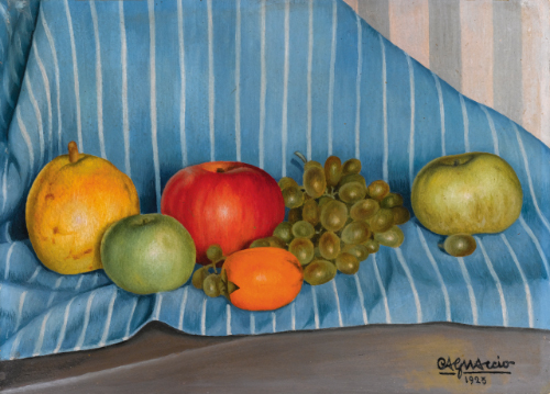 CAGNACCIO DI SAN PIETRO 1897 - 1946 NATURA MORTA CON FRUTTA signed and dated 1923, oil on cardboard firmato e datato 1923 olio su cartone cm 25,2x34,8 PROVENANCE Galleria del Levante, Milano Galleria Gian Ferrari, Milano Ivi acquistato dall'attuale proprietario nel 1991 EXHIBITED Verona, Galleria dello Scudo; Milano, Palazzo Reale, Realismo magico. Pittura e scultura in Italia 1919-1925, 1988- 1989