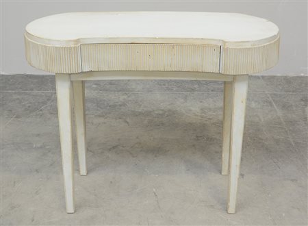 Toilette in legno laccato grigio con piano di forma stondata e fascia grissinata a un cassetto. Italia, anni '40. (cm 96,5x76x42,5) (difetti e mancanze)