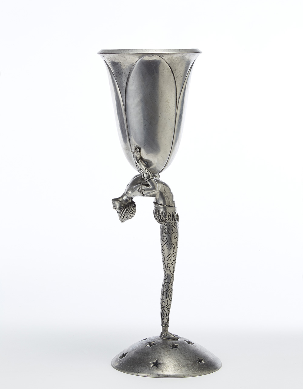 Sculpture for Athena depicting a man rising a cup. 1930s. Tin alloy. (h 62.5 cm.) (slight defects)