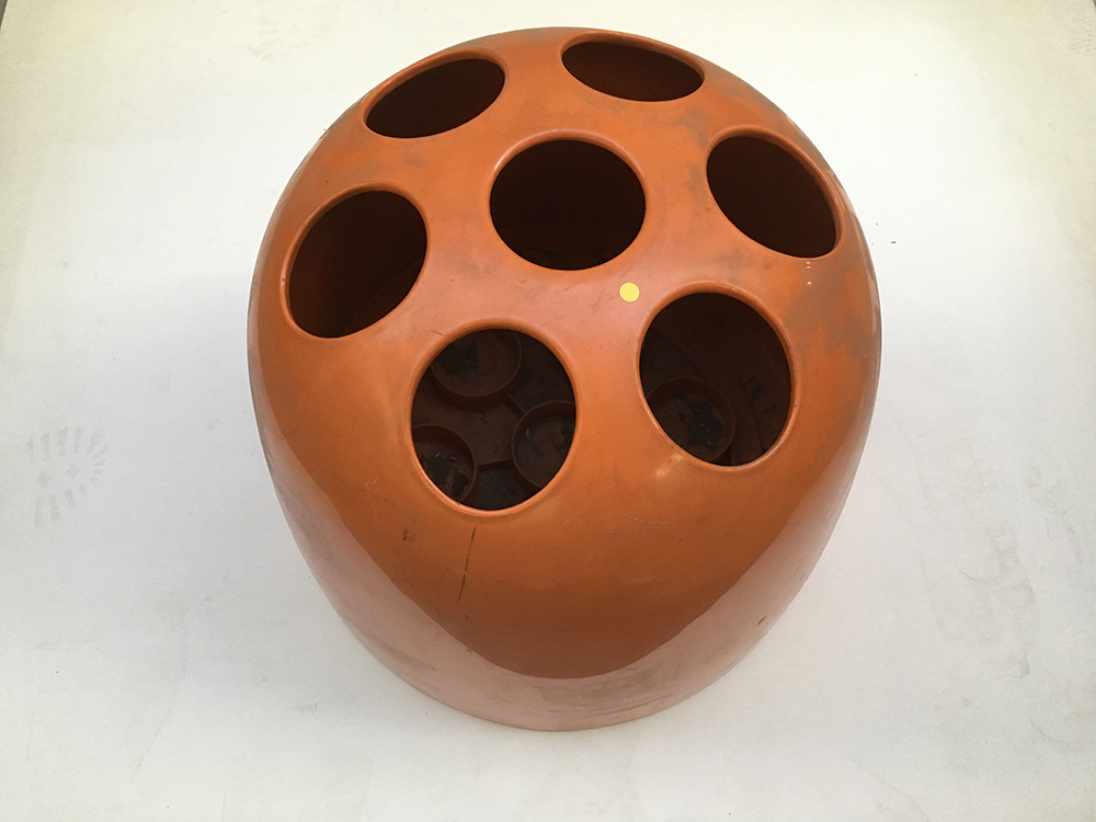 Portaombrelli modello "Dedalo ". Produzione Studio Artemide, Italia, anni '70. Plastica arancio. (h cm 35; d cm 38) (lievi difetti)