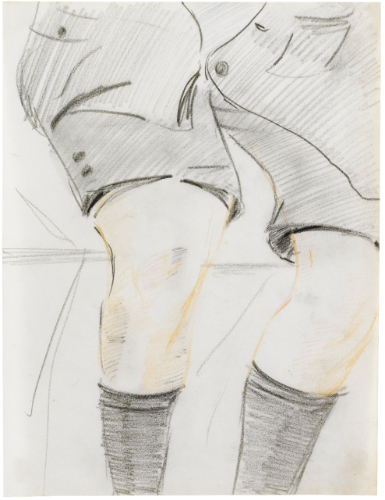 FILIPPO DE PISIS 1896 - 1956 GAMBE DI MONELLO graphite and coloured pencils on paper. Executed in 1925 matita grassa e matite colorate su carta giallina cm 26,5x20 Eseguito nel 1925 Opera registrata presso l'Archivio dell'Associazione per il Patrocinio dell'opera di Filippo de Pisis, Milano, con il n. 02872 PROVENANCE Galleria Gian Ferrari, Milano Ivi acquistato dall'attuale proprietario nel 2006 EXHIBITED Milano, Claudia Gian Ferrari Studio di consulenza per il '900 italiano, Filippo de Pisis. Taccuino Parigi 1925, Milano 2006, pag. 69, illustrato