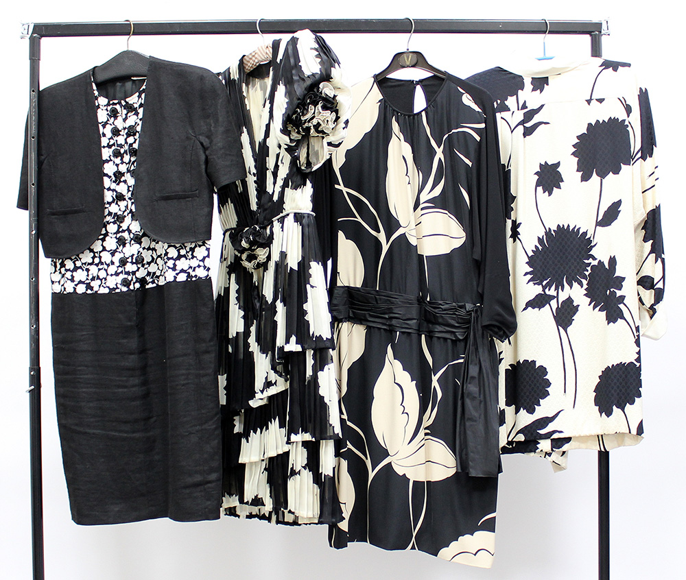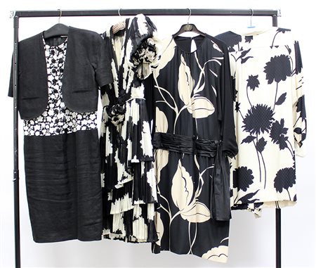 Lotto composto da quattro vestiti tutti nei toni del nero e avorio in diversi tessuti (tg. differenti) (difetti)