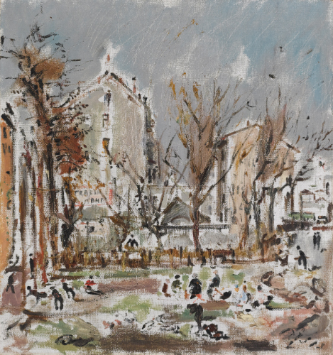 FILIPPO DE PISIS 1896 - 1956 PERIFERIA MILANESE signed, oil on canvas. Executed in 1941 firmato olio su tela cm 80x75 Eseguito nel 1941 PROVENANCE Collezione S. Colongo, Torino Galleria d'Arte Maggiore, Bologna Acquistato dall'attuale proprietario nel 1983 EXHIBITED Comacchio, Palazzo Bellini, De Pisis, 1986, n. 76, illustrato LITERATURE G. Raimondi, De Pisis, Firenze 1952, pag. 105 G. Briganti, De Pisis Catalogo Generale, Milano 1991, vol. II, pag. 537, n. 1941 12, illustrato