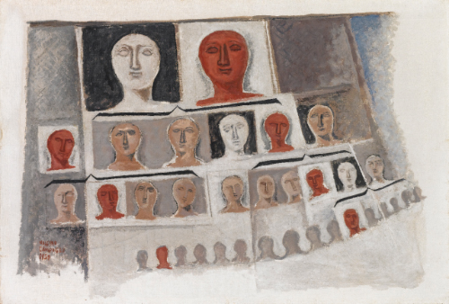 MASSIMO CAMPIGLI 1895 - 1971 LA LOIS D'ATAVISME (GÉNÉALOGIE) signed and dated 1930, titled on the reverse, oil on canvas firmato e datato 1930; intitolato sul retro olio su tela cm 89,5x130 L'autenticità dell'opera è stata confermata da Nicola Campigli, Saint Tropez, in data 12 settembre 2011, con il n. 558151253 L'opera sarà pubblicata nel Catalogue Raisonné "Massimo Campigli" a cura della Galleria Tega, di prossima pubblicazione L'opera è accompagnata da certificato su fotografia rilasciato da Nicola Campigli, Saint-Tropez PROVENANCE Collezione Jeanne Bucher, Parigi Collezione E. Tosi, Milano Galleria Arco Farnese, Roma Ivi acquistato dall'attuale proprietario nel 1995 EXHIBITED Parigi, Galerie Jeanne Bucher, Massimo Campigli, 1930 Venezia, Galleria del Cavallino, Campigli, 1945, n. 52 Venezia, XXIV Biennale Internazionale d'Arte, 1948, n. 937 Bruxelles, Société Auxiliaire des Expositions du Palais des Beaux Arts, Art Contemporain Italien, 1950 Venezia, XXVII Biennale Internazionale d'Arte, 1954, n. 709 Torino, Civica Galleria d'Arte Moderna, Capolavori d'Arte Moderna nelle Collezioni Private, 1959 Torino, Civica Galleria d'Arte Moderna, Pittori d'oggi Francia-Italia, 1960 Milano, Palazzo Reale, Campigli, 1967, tav. IV, illustrato Milano, Galleria del Naviglio, Omaggio a Cardazzo, 1968 Ferrara, Palazzo dei Diamanti, Massimo Campigli, 1979, n. 7 Acqui Terme, Palazzo Liceo Saracco, Massimo Campigli, 1983 Roma, Galleria Arco Farnese, Opere scelte, 1990 Brescia, Palazzo Martinengo, Les Italiens de Paris. De Chirico e gli altri, 1998, pag. 174, n. 36, illustrato a colori Budapest, Museum Szépmüvészeti, Massimo Campigli. Opere 1922-1964, 2000, pag. 52, n. 4, illustrato Milano, Museo della Permanente, Massimo Campigli. Essere altrove, essere altrimenti, 2001-2002, pag. 36, n. 18, illustrato a colori Roma, Museo del Corso, La famiglia nell'arte. Storia e immagini nell'Italia del XX secolo, 2002-2003 Darmstadt, Institut Mathildenhöhe, Massimo Campigli. Mediterraneità e Modernità, 2003-2004, pag. 152, n. 40, illustrato a coli