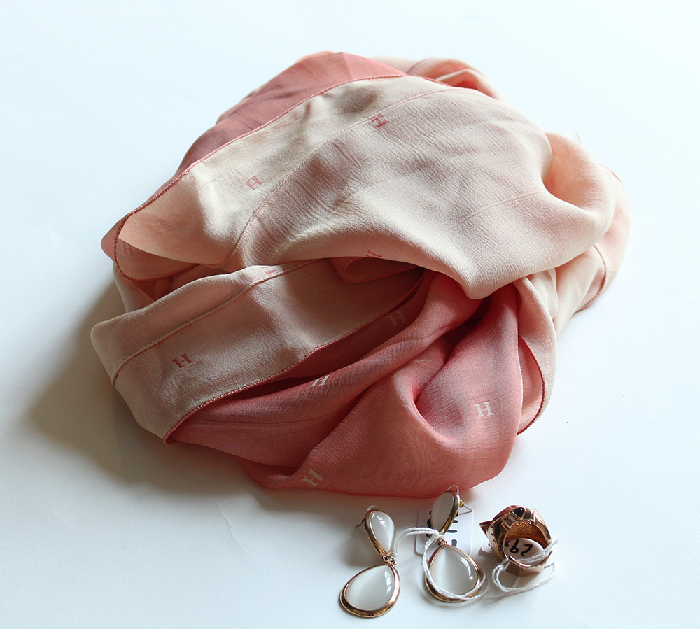 HERMÈS e anonimi Lotto composto da una sciarpa in chiffon color cipria, un...