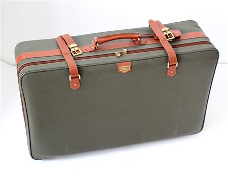 NAZZARENO GABRIELLIValigia morbida in similpelle verde oliva e vacchetta (cm...