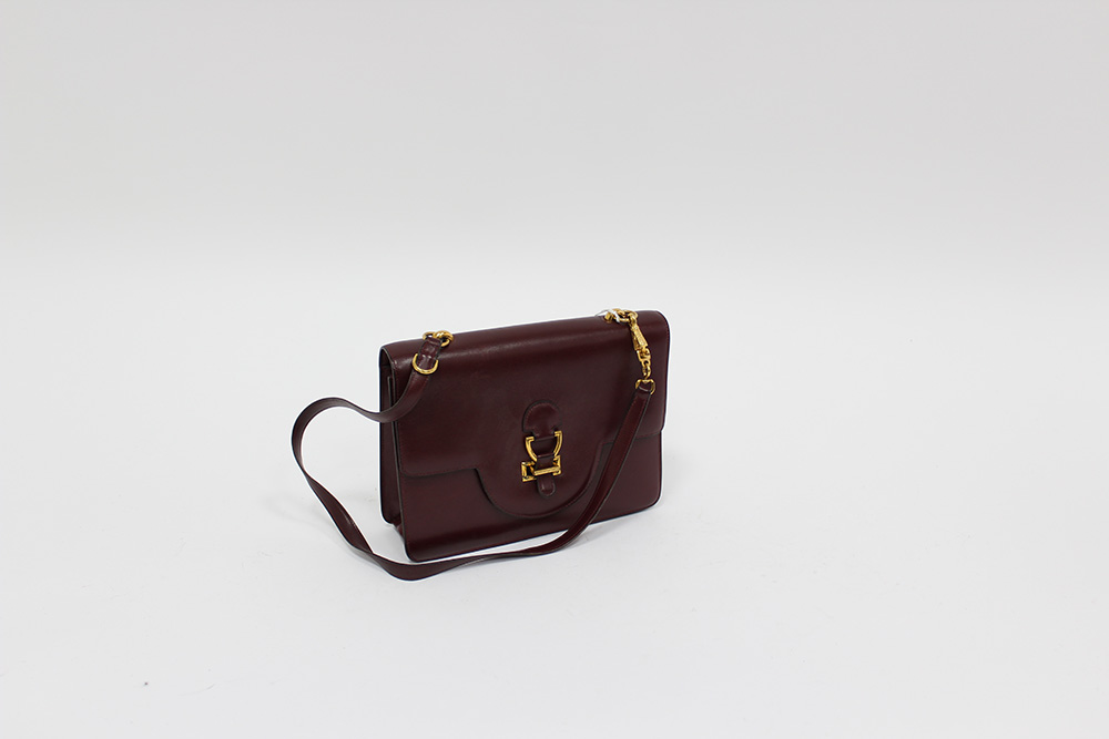 HERMÈS Borsetta a tracolla in pelle color bordeaux (cm 24) (segni d'uso)