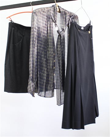 CHANEL Lotto composto da due gonne in lana e una camicia in seta lamé (tg....