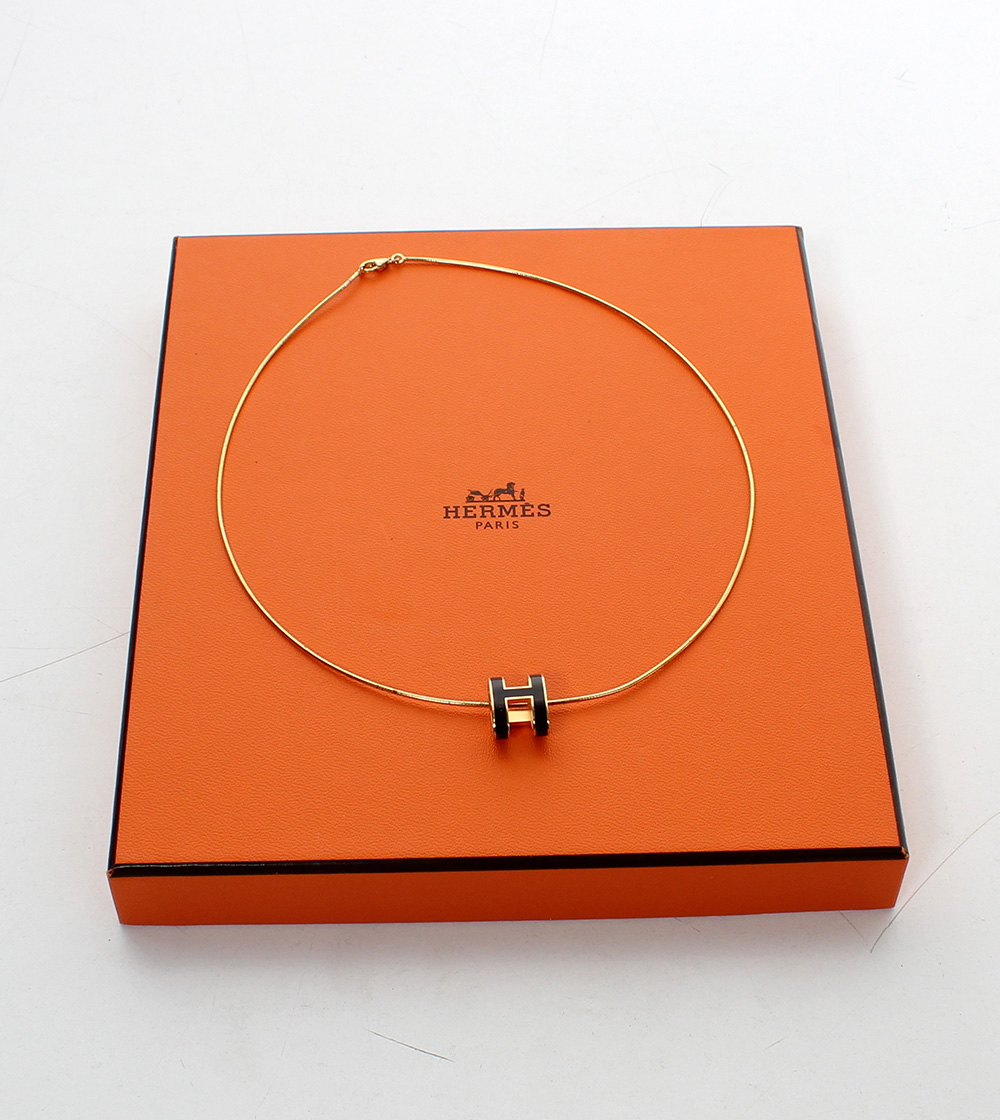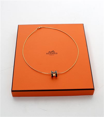 HERMESPendente "Pop H" in smalto nero e metallo placcato oro, con scatola...
