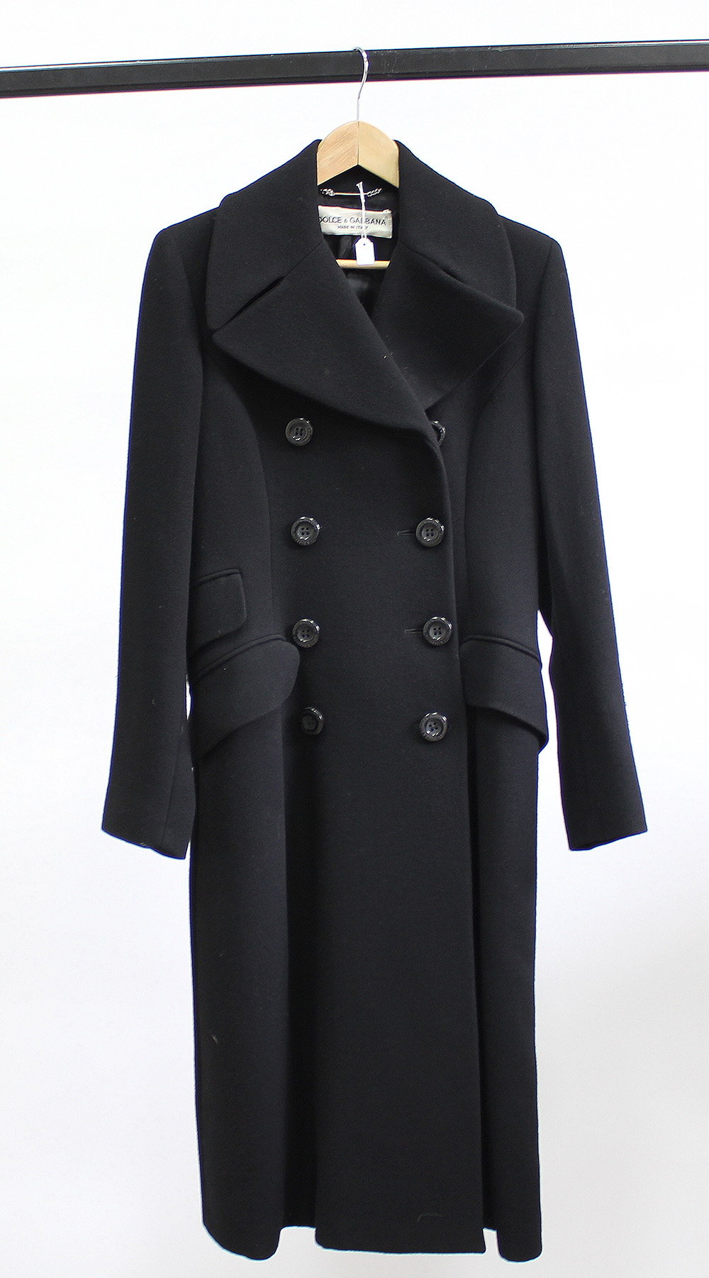 DOLCE & GABBANA Cappotto in lana nero a doppio petto con grandi revers,...