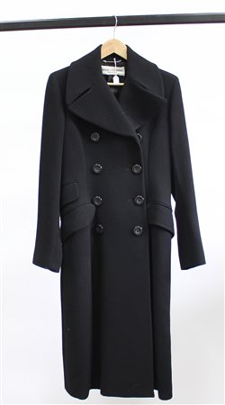 Cappotto in lana nero a doppio petto con grandi revers, bottoni logati (tg. 44)