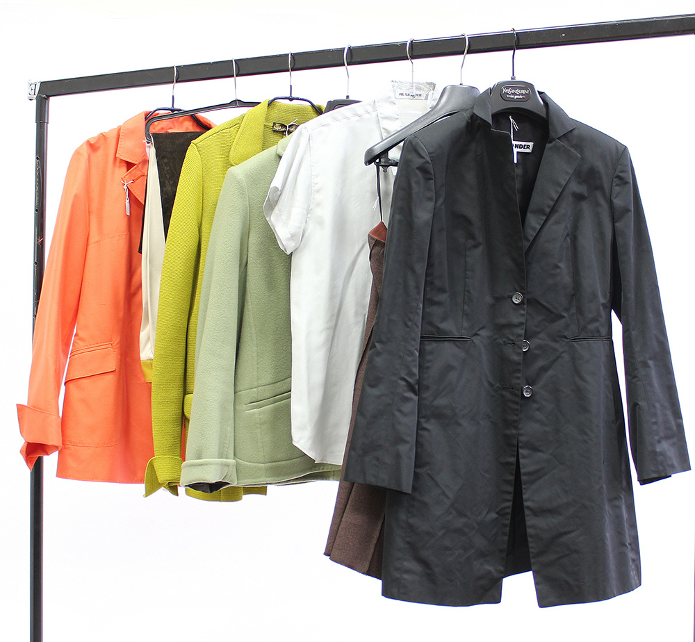 Lotto composto da una gonna, due paia di pantaloni, tre giacche, uno spolverino e una camicietta a maniche corte in diversi colori e materiali (tg. varie) (lievi segni d'uso)