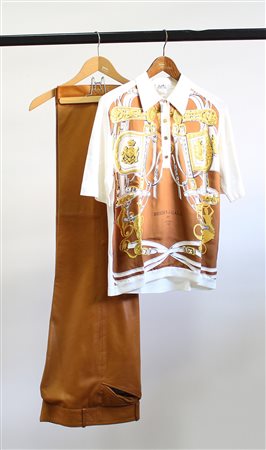 HERMÈS Lotto composto da maglietta in maglina di cotone e seta con disegno...